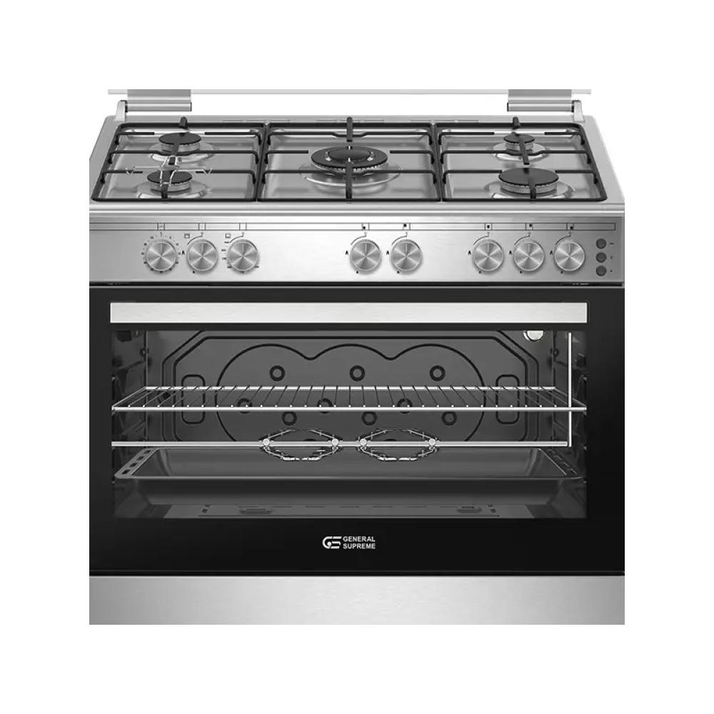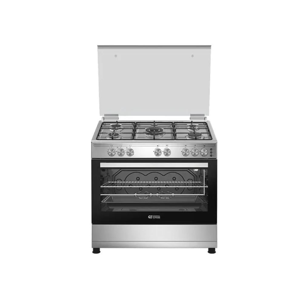 جنرال سوبريم , غاز, 90*60 سم, 5 شعلات, امان كامل, شواية, ستيل, تركي