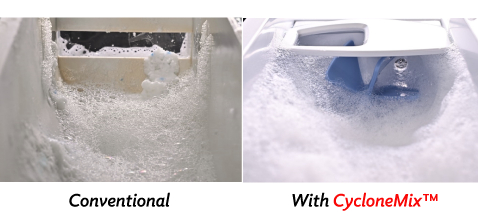 بفضل وجود الدافعة الدوارة في الدرج، تعمل تقنية سيكلون ميكس على زيادة ذوبان المنظف بشكل أكبر، وبالتالي تحسين أداء الغسيل.