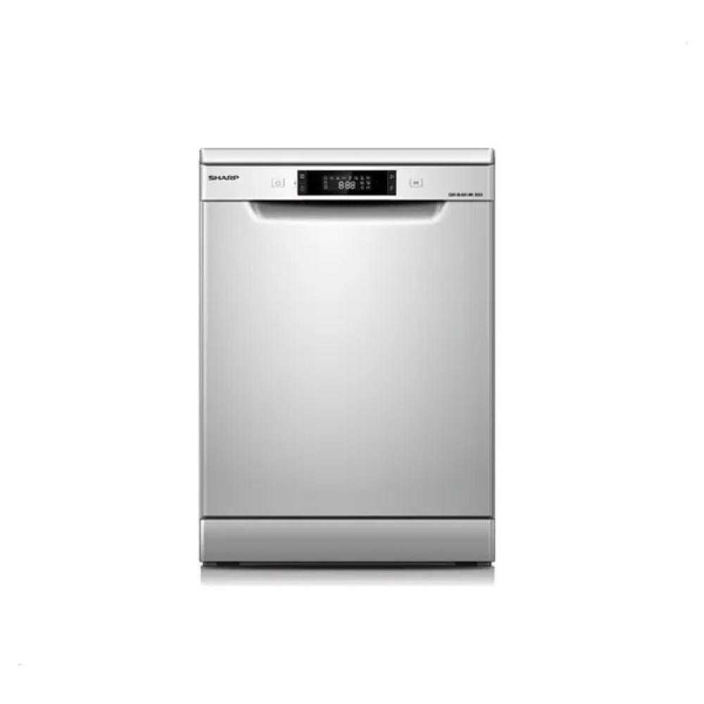 غسّالة صحون شارب القائمة بذاتها مع 14 موضعاً لأدوات المائدة و8 برامج - باللون الفضّي