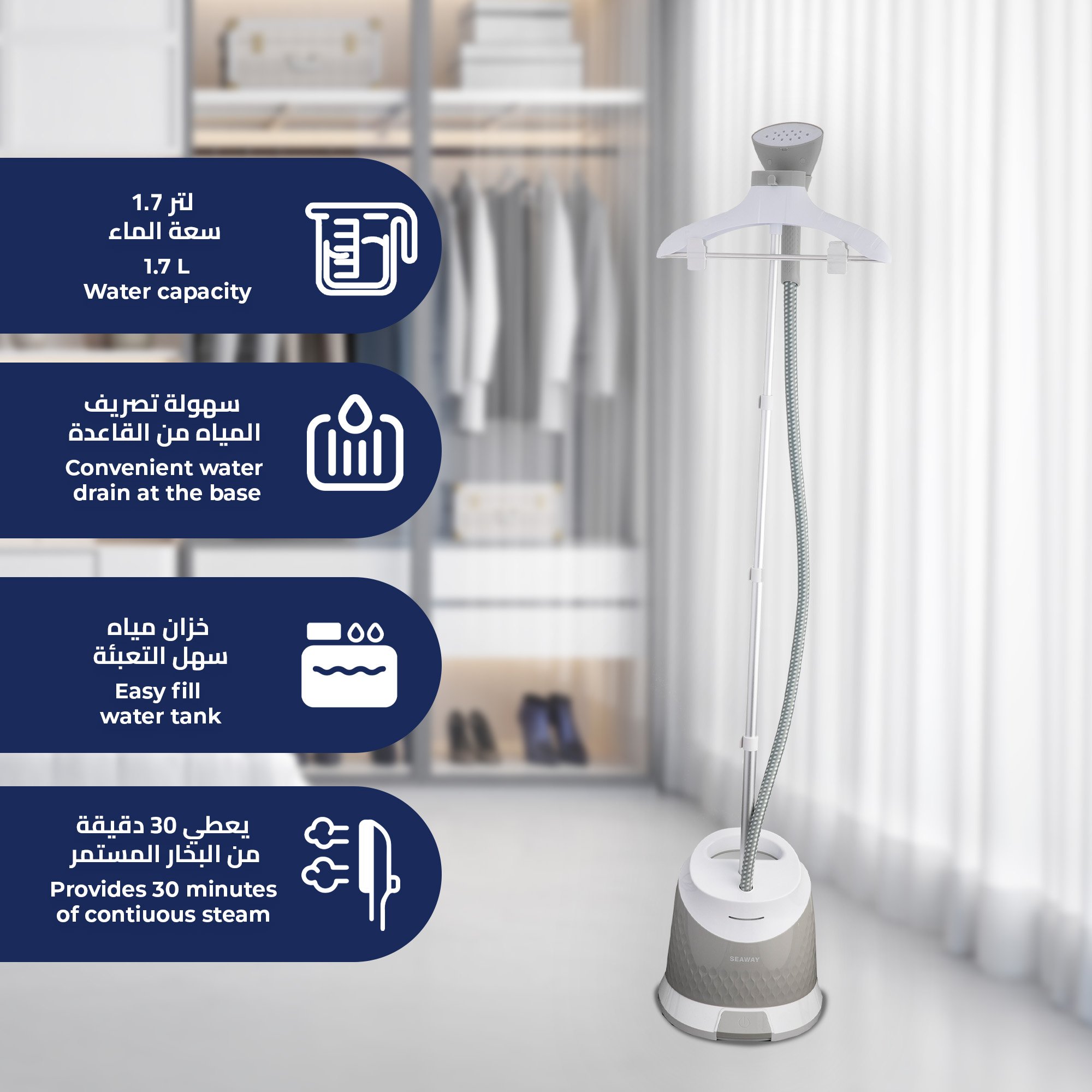 طول الخرطوم المياه : 1.45 متر